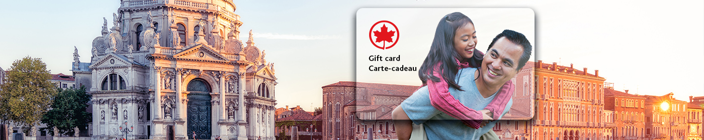 Air Canada Gift Cards can be used to pay for flights, vacation packages, and travel perks, to create your own unique adventure. Where will your Gift Card take you?